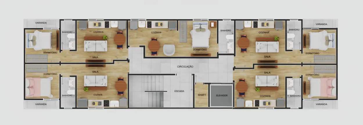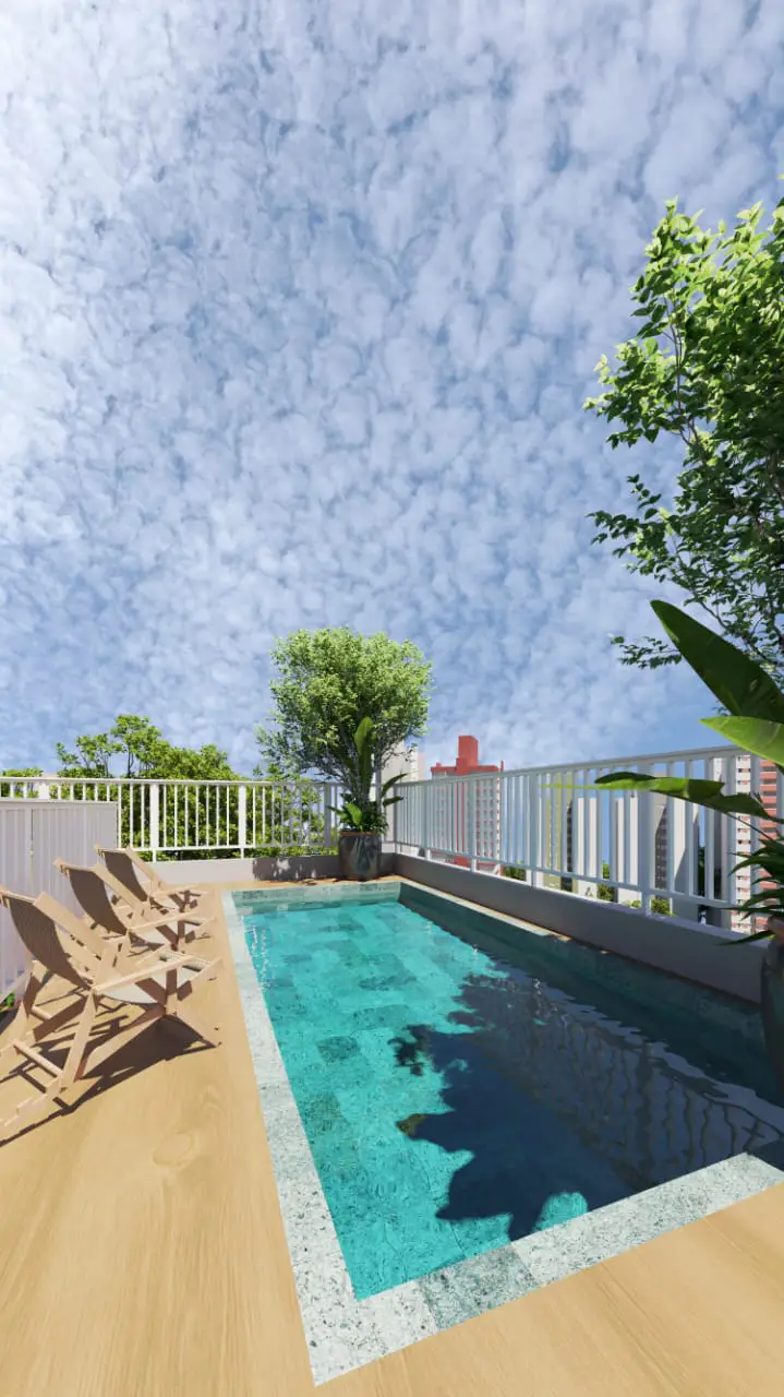 Os studios contam com layouts funcionais que otimizam o uso do espaço, enquanto as unidades de 1 quarto oferecem ainda mais privacidade e conforto, perfeitas para quem deseja um lar acolhedor e prático.